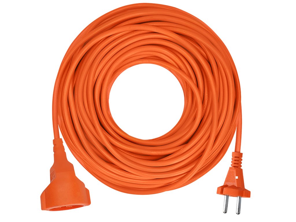 Oranžový prodlužovací kabel s délkou 20 metrů a jednou zásuvkou je ideální k prodloužení elektrické energie na zahradě nebo v dílně. Vhodný pro připojení zařízení s dvoupólovou neuzemněnou vidlicí přívodní sňůry, kterými je většina elektrických nástrojů. Barevné odlišení od okolního prostředí zvyšuje bezpečnost při práci.