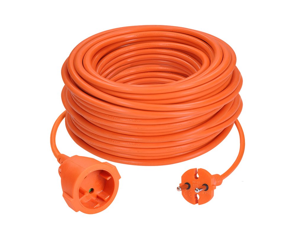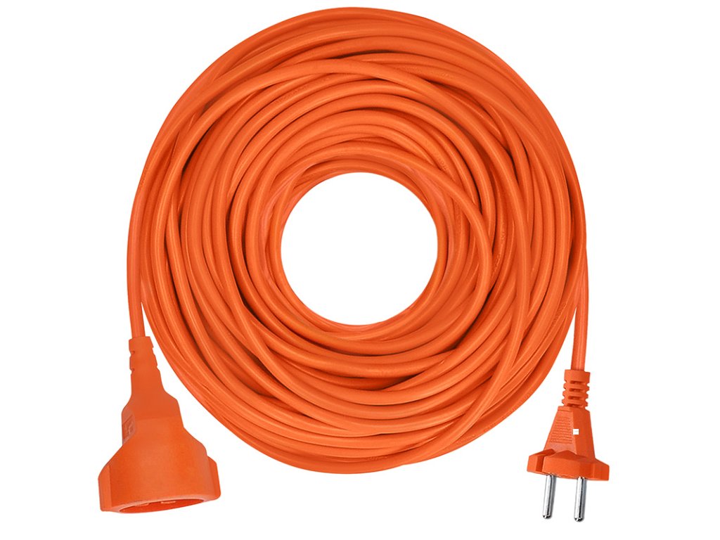 Oranžový prodlužovací kabel s délkou 25 metrů a jednou zásuvkou je ideální k prodloužení elektrické energie na zahradě nebo v dílně. Vhodný pro připojení zařízení s dvoupólovou neuzemněnou vidlicí přívodní sňůry, kterými je většina elektrických nástrojů. Barevné odlišení od okolního prostředí zvyšuje bezpečnost při práci.