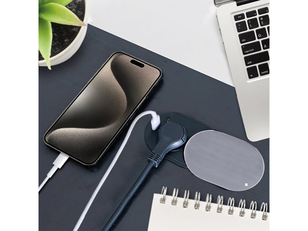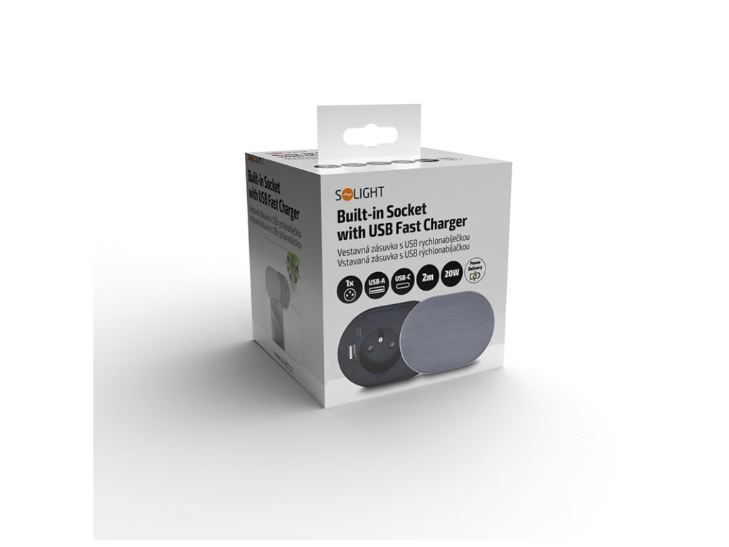 - vestavná elektrická zásuvka pro pracovní desky a stoly s USB rychlonabíječkou