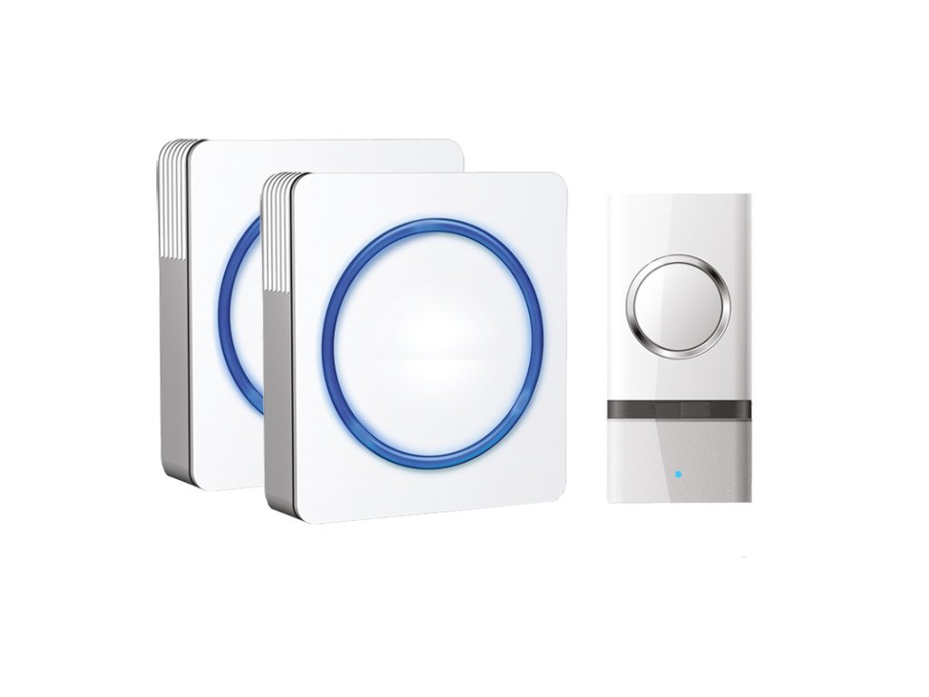 Bezdrátové zvonky stačí zapojit do běžné zásuvky, není potřeba žádné vrtání ani tahání kabelů. Dosah až 120 metrů v otevřeném prostoru zaručuje bezproblémové fungování v bytech, rodinných domech i menších provozovnách. Oba přijímače jsou předem spárovány s jedním vysílačem a umožňují pokrýt větší prostor – jeden můžete umístit například do přízemí, druhý do patra nebo do vzdálenější místnosti. Tlačítko je napájeno baterií a snadno se upevňuje na dveře či zeď.