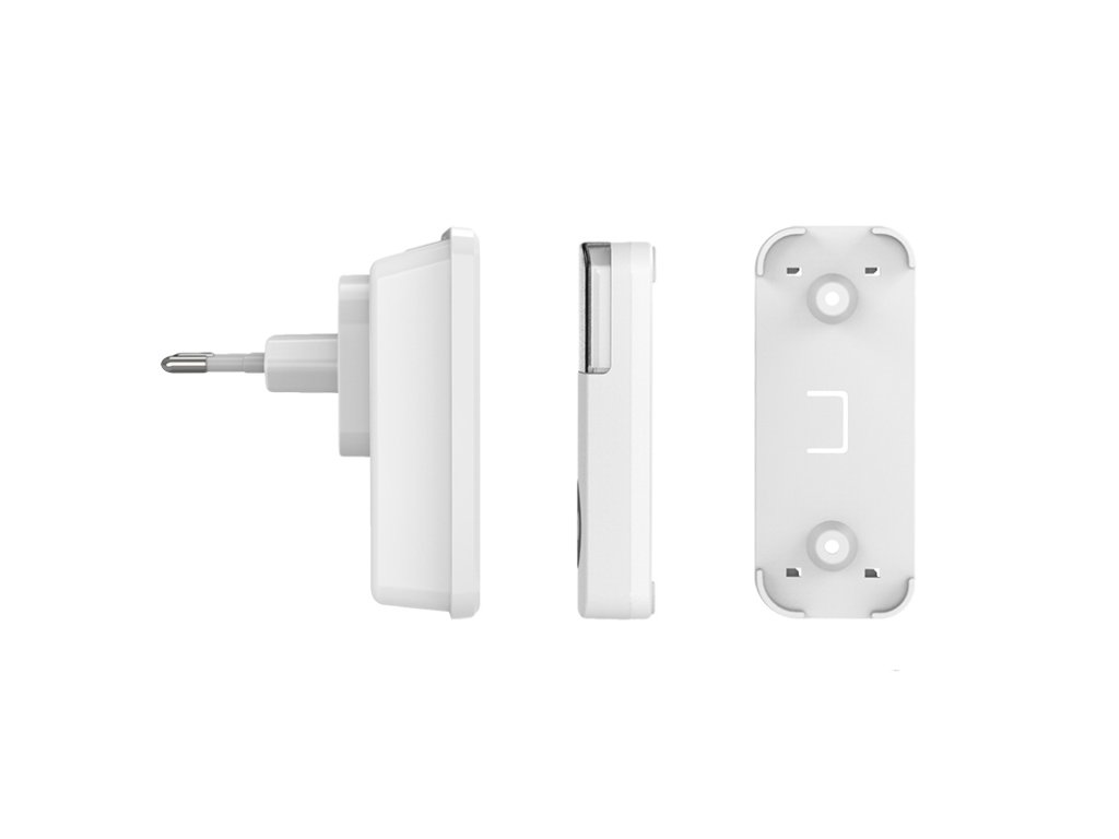 Bílé provedení s čistými liniemi působí nenápadně a elegantně zároveň. Zvonek decentně ladí s většinou interiérů a neruší celkový vzhled místnosti. Kombinuje moderní design s praktickým využitím v každodenním provozu.