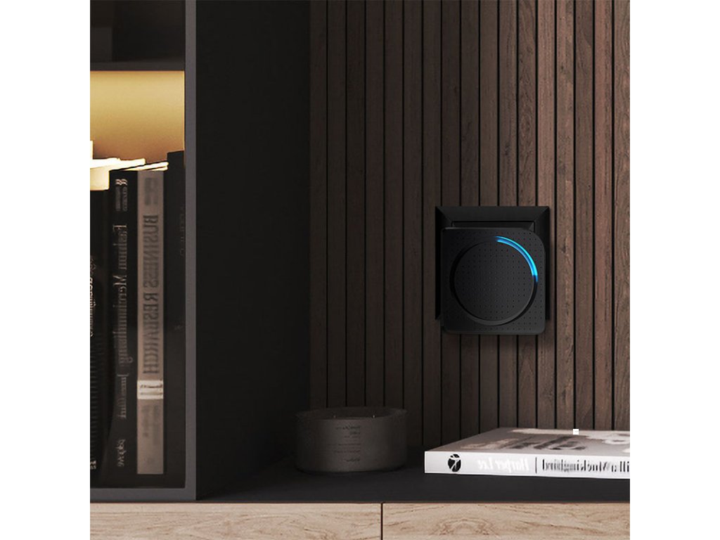 Černé provedení s čistými liniemi působí nenápadně a elegantně zároveň. Zvonek decentně ladí s většinou interiérů a neruší celkový vzhled místnosti. Kombinuje moderní design s praktickým využitím v každodenním provozu.