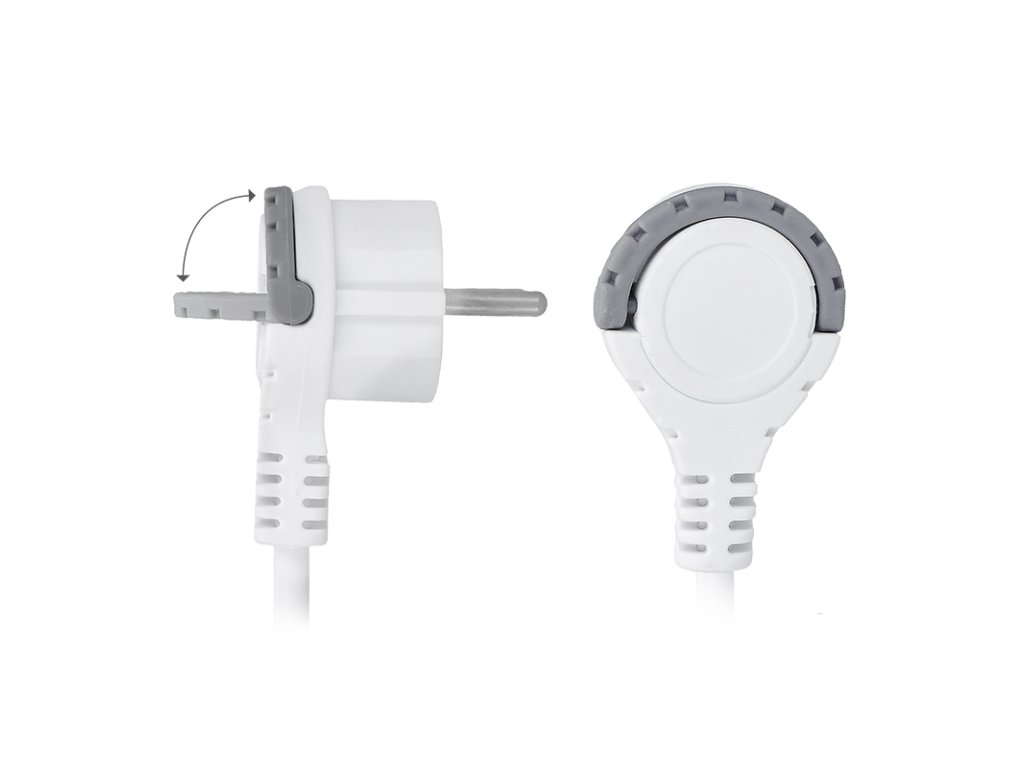 • úhlová vidlice s nízkým profilem od stěny, sklopný úchyt pro snadné vytažení ze zásuvky