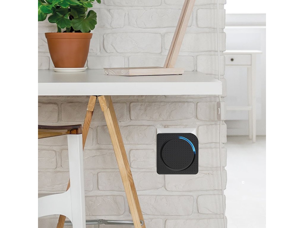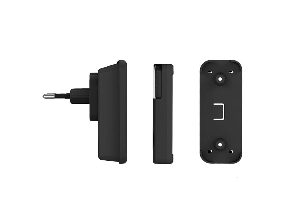 Černé provedení s čistými liniemi působí nenápadně a elegantně zároveň. Zvonek decentně ladí s většinou interiérů a neruší celkový vzhled místnosti. Kombinuje moderní design s praktickým využitím v každodenním provozu.