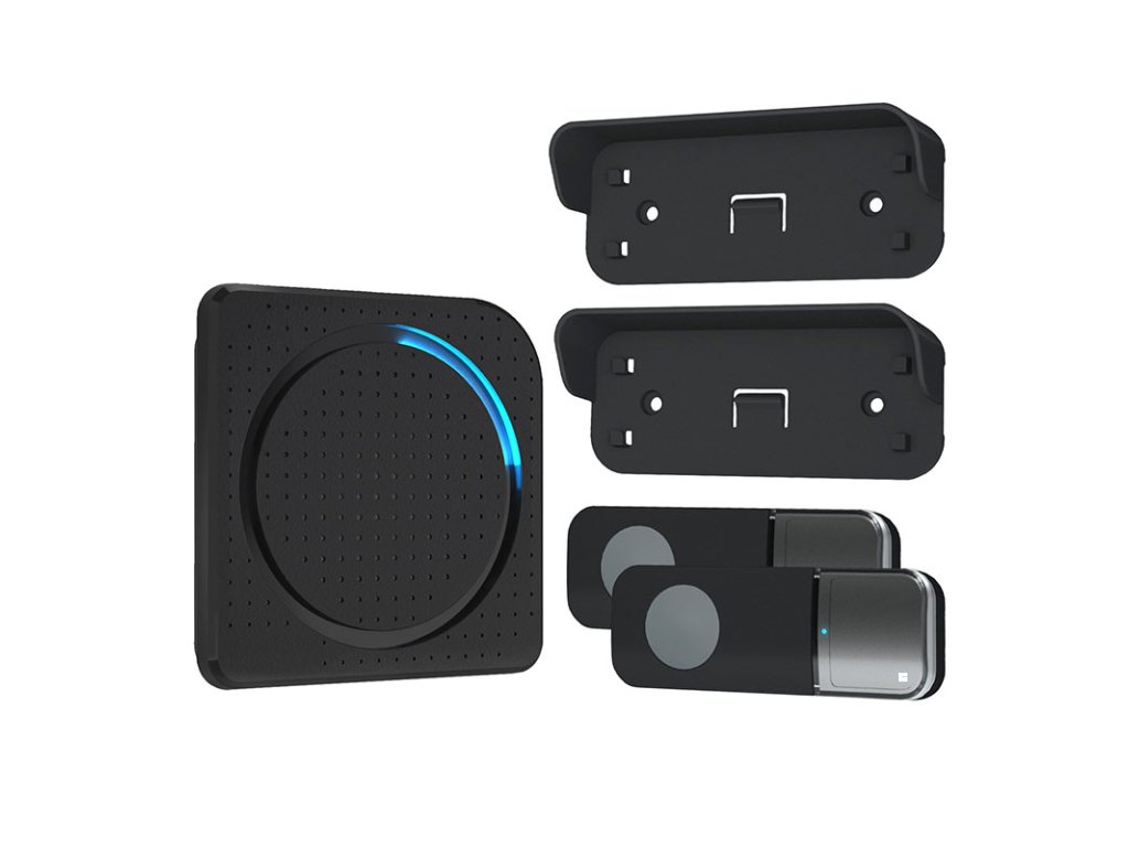 Bezdrátový zvonek stačí zapojit do běžné zásuvky, není potřeba žádné vrtání ani tahání kabelů. Dosah až 200 metrů v otevřeném prostoru zaručuje bezproblémové fungování i ve větších domech, kancelářích nebo provozovnách. Oba vysílače jsou spárovány ke zvonku a zvyšují variabilitu použití, např. ke vchodovým dveřím a na branku. Jsou na baterie a snadno se upevní na zeď nebo dveře. Stříška vysílače zvyšuje odolnost proti dešti a zároveň chrání před přímým slunečním světlem, to prodlužuje jeho životnost.