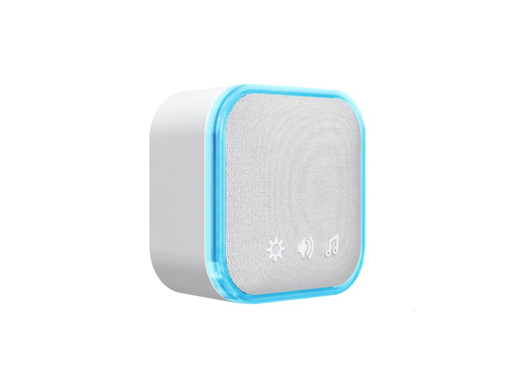 Zvonek nabízí výběr ze 36 melodií a 4 úrovní hlasitosti. Ovládací tlačítka jsou umístěna přímo na přední straně pod látkovým dekorem – to výrazně usnadňuje přístup a zjednodušuje nastavení funkcí bez nutnosti otáčet nebo odpojovat zařízení. Při zazvonění se rozsvítí velký světle modrý LED rámeček, který zajišťuje dobře viditelnou světelnou signalizaci. Ideální i do hlučnějších prostor nebo pro osoby se zhoršeným sluchem.