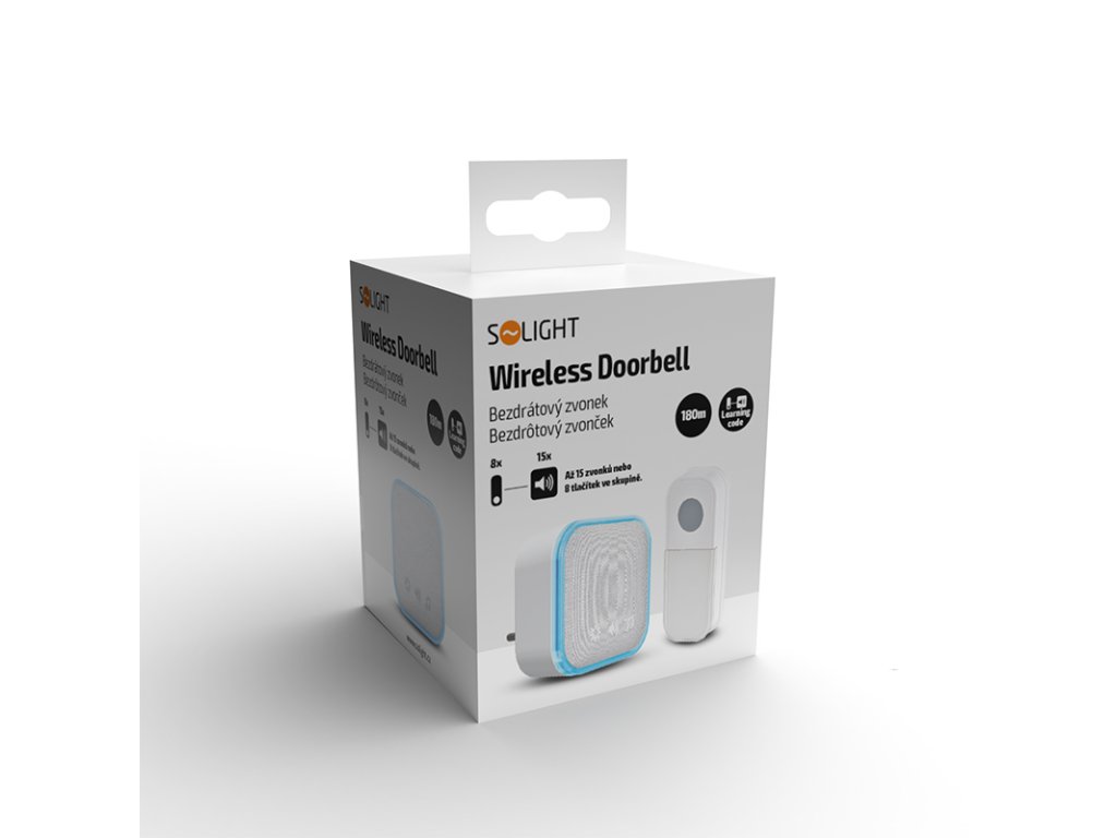Solight bezdrátový zvonek, do zásuvky, 180m, bílý, learning code