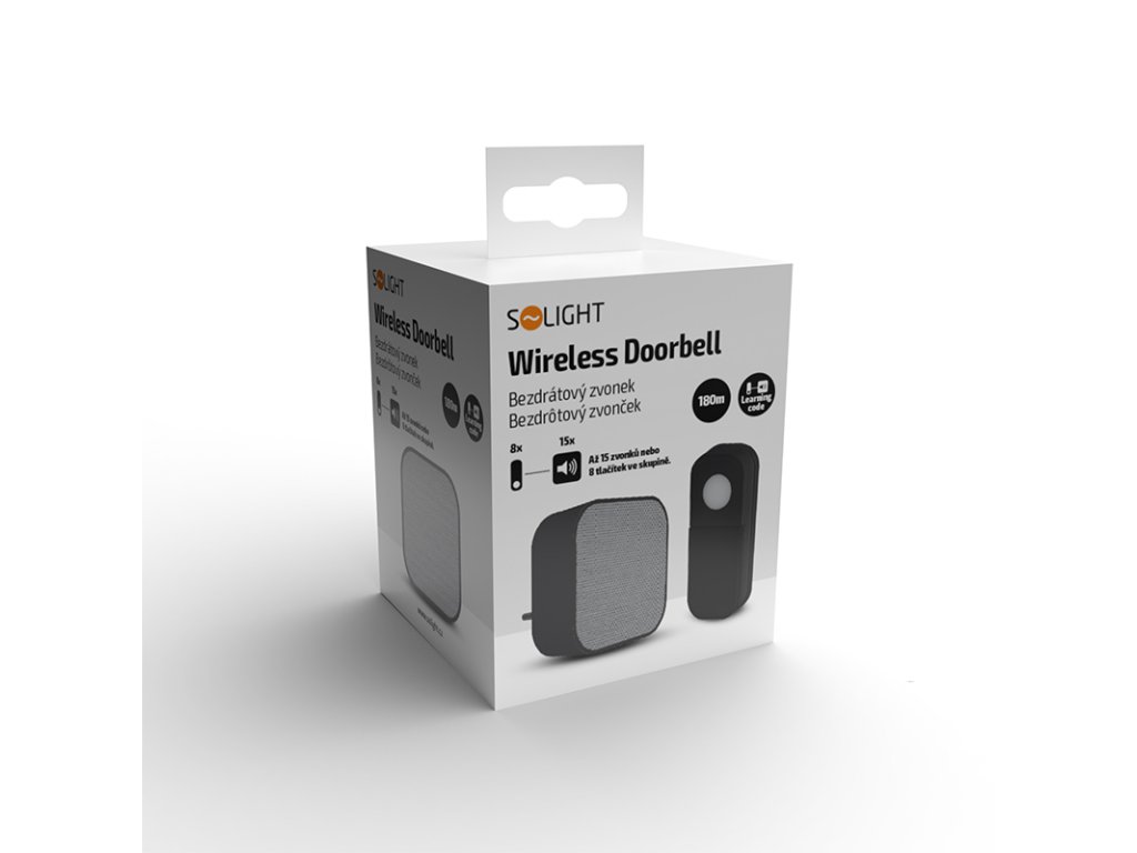 Solight bezdrátový zvonek, do zásuvky, 180m, černý, learning code