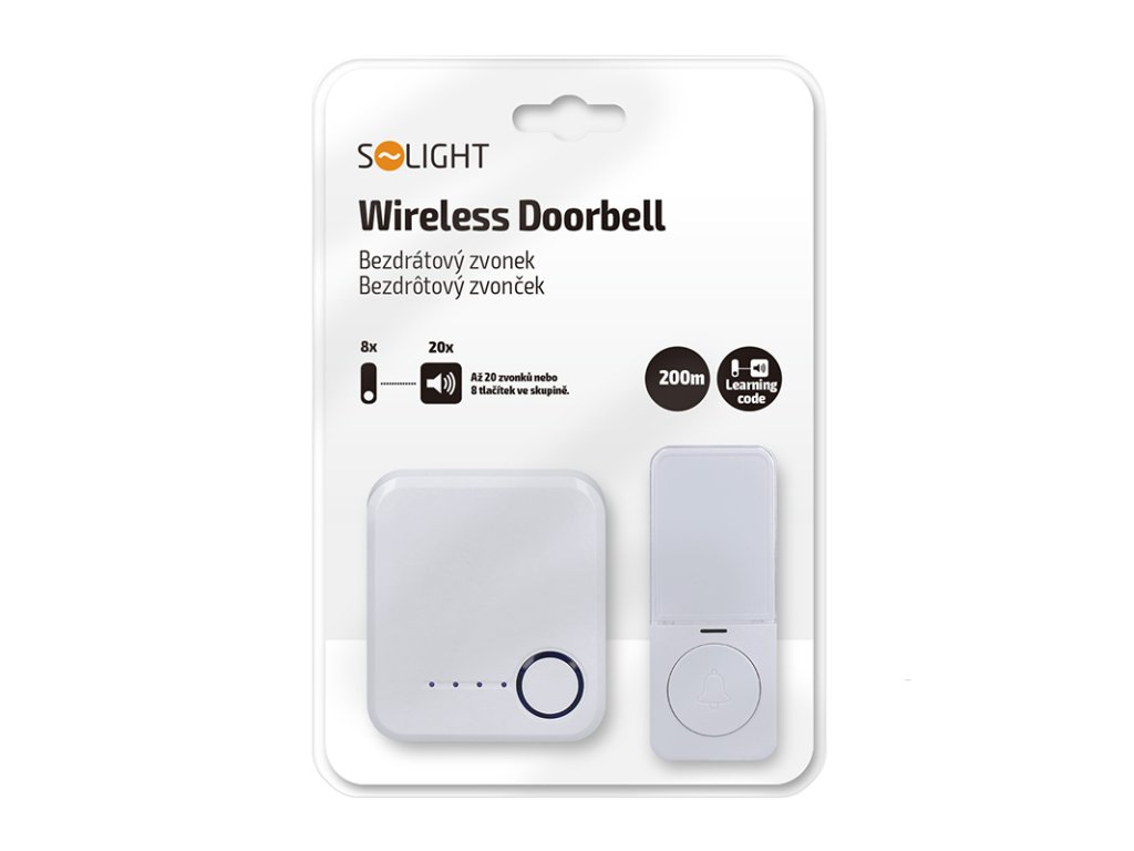 Solight bezdrátový zvonek, do zásuvky, 200m, bílý, learning code