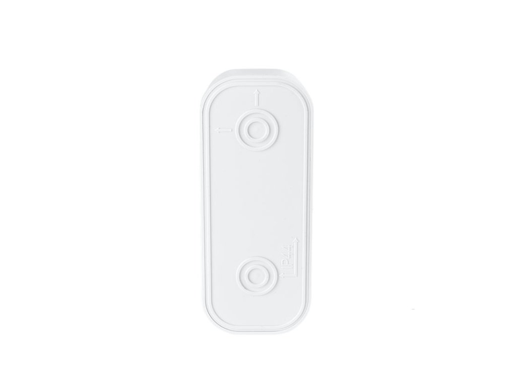 Čelní strana zvonku s látkovým povrchem působí měkce i v moderních interiérech. Zaoblené linie a čisté bílé provedení ladí s různými typy místností. Tlačítko má průhlednou krytku na jmenovku a díky ochraně IP44 bez problémů odolá venkovnímu použití. Uchycení je jednoduché – pomocí samolepicí podložky nebo vrutů.