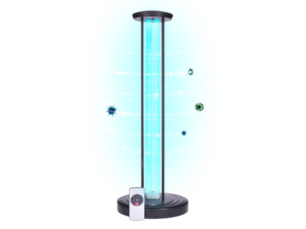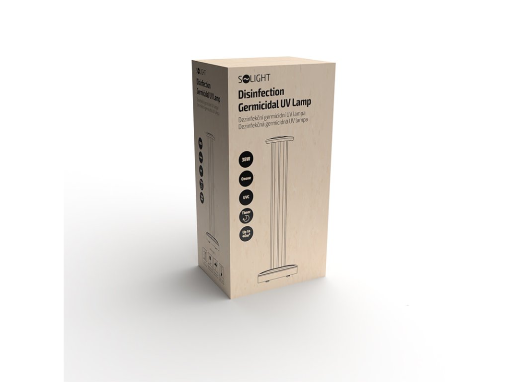 Tato přenosná germicidní lampa poskytuje účinnou dezinfekci domácností, kanceláří, škol a dalších prostor pomocí UV-C záření a ozónu. Je až 3000× rychlejší než chlór a 25× efektivnější než kyselina chloritá. Likviduje viry, bakterie, plísně a roztoče na ploše až 40 m2. Nabízí časovač 15/30/60 minut, dálkové ovládání s dosahem 15 m a bezpečnostní zpožděné zapnutí. Disponuje křemíkovou trubicí, výkonem 38 W a životností zářiče až 5000 hodin. Napájení 230V/50Hz, délka kabelu 1,2 m. Barva černá, hmotnost 1,1 kg.