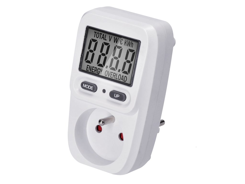 Měřič spotřeby elektrické energie s přehledným LCD displejem o úhlopříčce 2" (5 cm) umožňuje měření spotřeby až do 9999 kWh s příkonem v rozmezí 2W až 3680W/16A. Disponuje nastavením ceny za energii, dvěma tlačítky pro snadnou obsluhu, funkcí přesného výpočtu ceny a měření spotřeby. Obsahuje dětskou pojistku, indikaci překročení maximálního příkonu ("overload") a měří elektrické veličiny, jako je napětí a okamžitý odebíraný výkon. Integrovaný stabilizátor napětí zajišťuje přesnost měření s odchylkou do ±1,5 %. Pracovní teplota se pohybuje mezi 0 až +50 °C. Napájení je AC 230V, 50Hz.