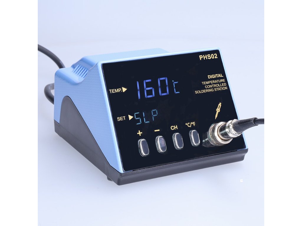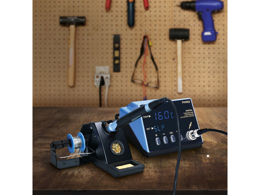 Páječka s LED displejem pro přesné pájení, která zobrazuje nastavenou a aktuální teplotu. Rychlé zahřátí do 8 sekund a výkon 70 W s rozsahem teploty 160 °C–480 °C. Automatický spánkový režim po 10 minutách nečinnosti, který sníží teplotu na 200 °C. Ergonomický design s flexibilním silikonovým kabelem a stojánkem pro bezpečné odkládání. Kalibrace teploty a čisticí houbička pro snadné čištění. Bezpečnostní funkce zahrnují ochranu před přehřátím. Napájení 220–240V, 50Hz, délka napájecího kabelu 1,35m.