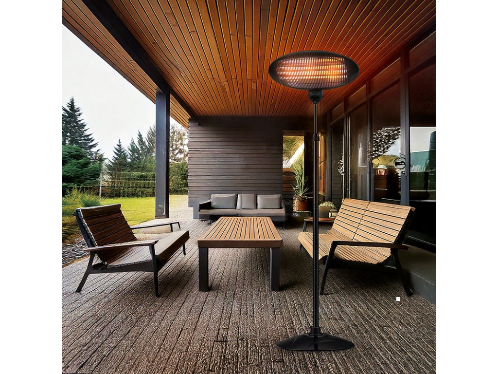 Infračervený venkovní zářič ihned produkuje zdravé a příjemné infračervené tepelné záření o výkonu až 2000 W bez předehřívání. Topidlo je vybavenou stojanem pro možnost flexibilní instalace. Nastavení 3 stupňů topení pomocí vypínače ovládaného provázkem.