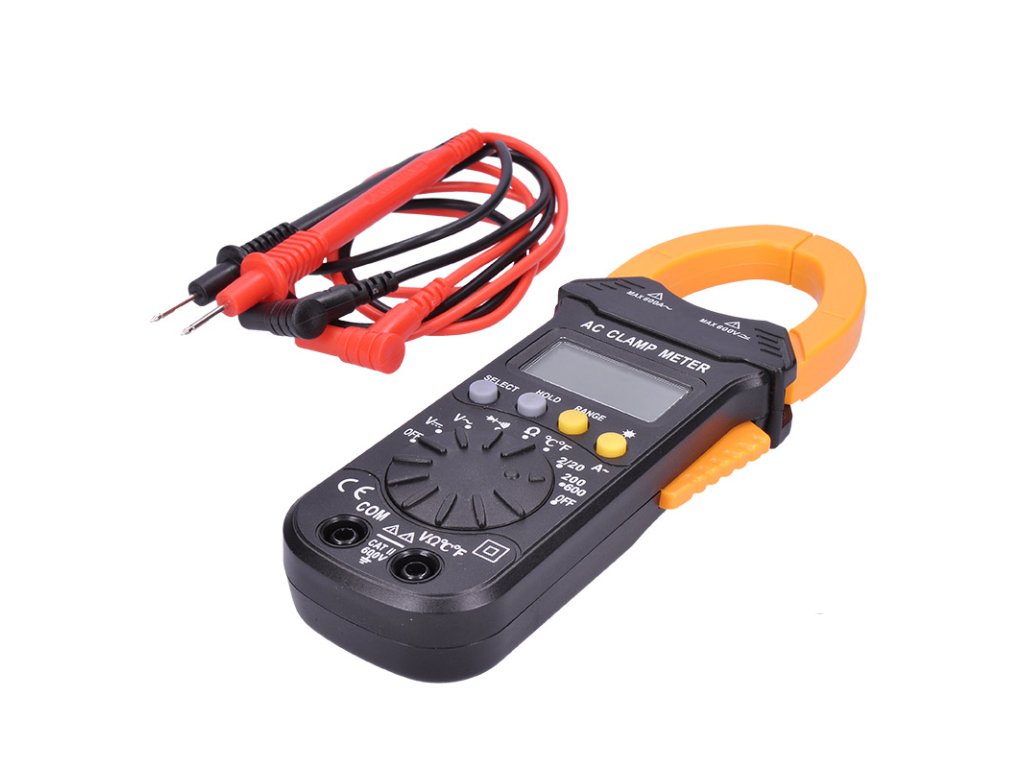 Digitální multimetr pro měření napětí, proudu, odporu a teploty. Nabízí test spojitosti obvodu a diodový test, s podsvíceným displejem pro lepší čitelnost. Automatické vypnutí, uchování poslední hodnoty a možnost ručního nebo automatického nastavení rozsahu. Indikace nesprávné polarity a indikace vybité baterie. Měřicí rozsahy: DC napětí (200mV - 600V), AC napětí (200mV - 600V), AC proud (2A - 600A), rezistence (200? - 20M?) a teplota (-40°C - 1370°C). Napájení: 2x AAA baterie (nejsou součástí balení). Rozměry: 190x68x28mm, hmotnost: 139g. Součástí balení: měřící kabely, teplotní sonda, pouzdro.