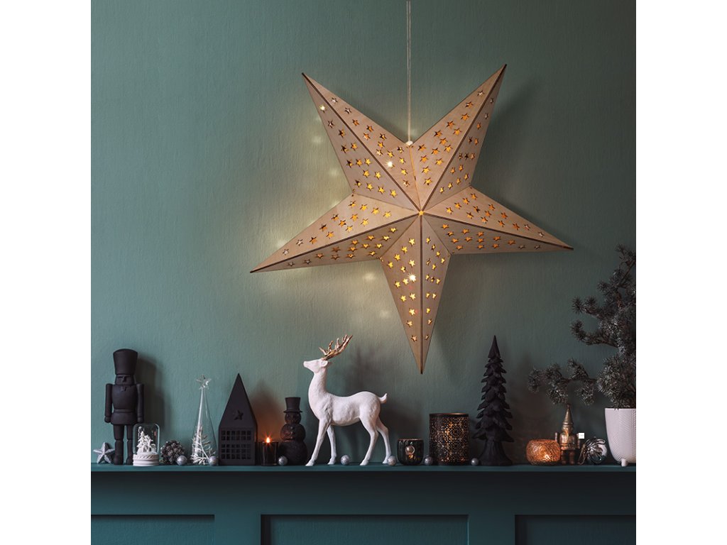 Hvězda je dodávána ve složeném stavu v krabici pro snadnou přepravu a skladování. Ideální pro vánoční výzdobu obývacího pokoje, vstupní haly nebo jako stylová dekorace do výlohy. Dodejte svému domovu jedinečný sváteční šarm!