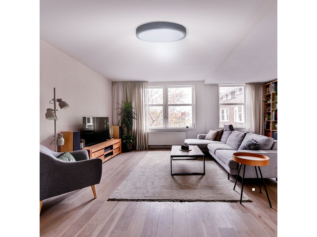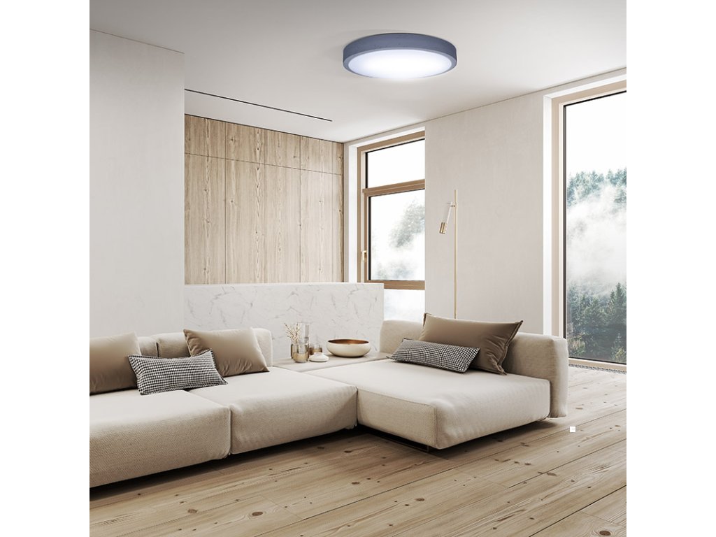 LED stmívatelné svítidlo Grey s povrchovou úpravou v dekoru šedého betonu přináší netradiční vzhled a chytré funkce do každého moderního interiéru. Dálkové ovládání umožňuje nastavení teploty světla v rozsahu 3000K až 6500K, plynulé stmívání a volbu z několika světelných režimů. Svítidlo má maximální příkon 48 W a světelný tok až 3360 lm (pro 4000K), čímž zajišťuje dostatek světla i pro větší místnosti.