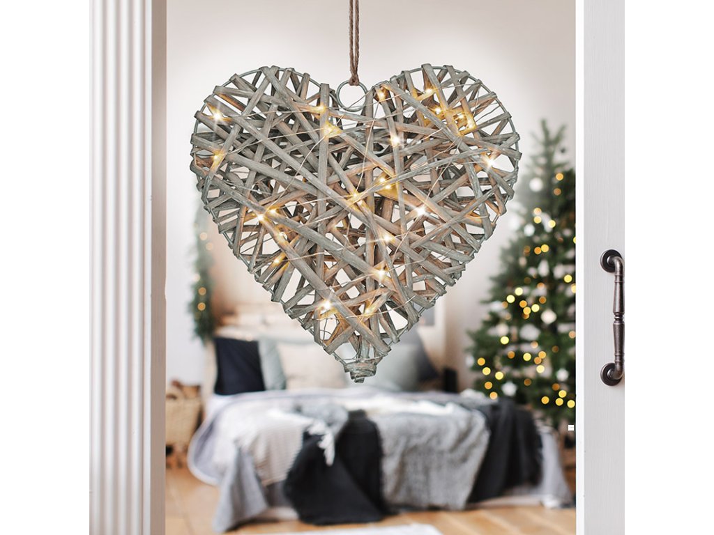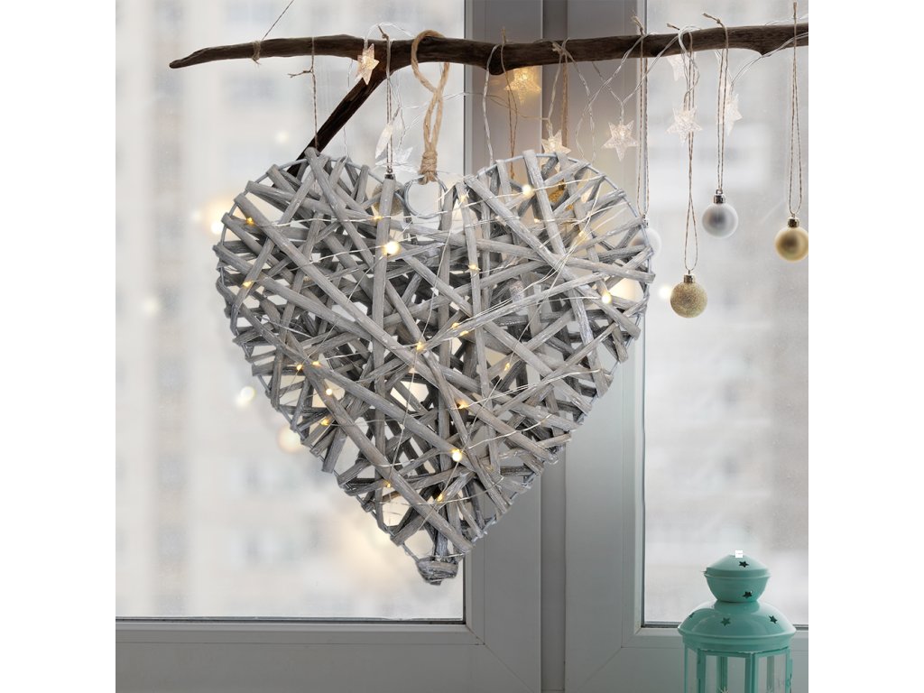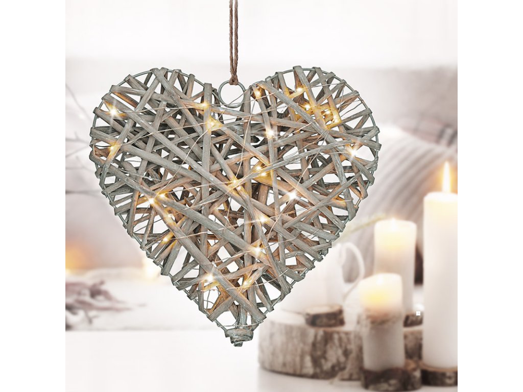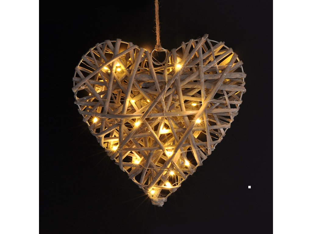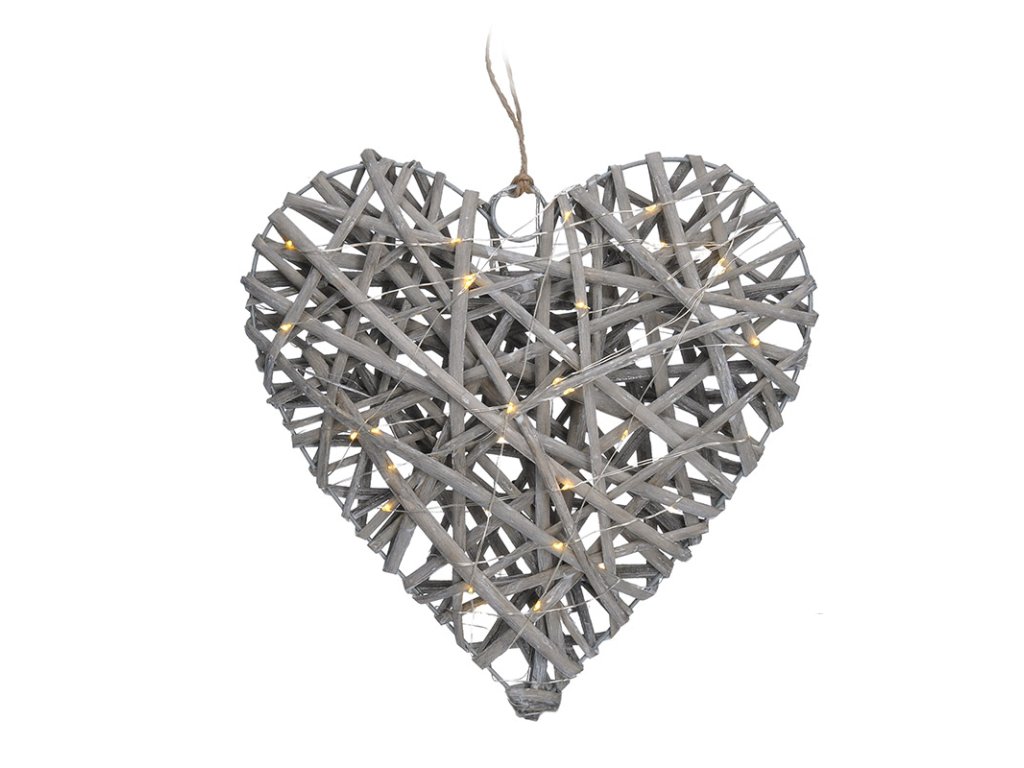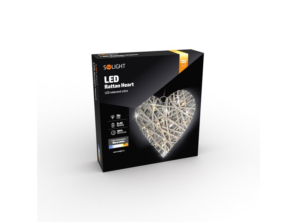 Solight LED ratanové srdce, 30x LED, 2x AA, 30cm