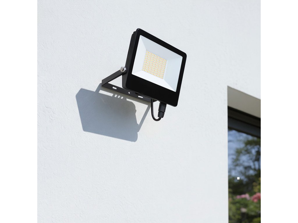 Díky širokému úhlu svícení 120° a vysokému indexu podání barev (CRI > 80) reflektor zajistí rovnoměrné a přirozené osvětlení. S krytím IP65 je plně odolný proti vodě a prachu, což umožňuje bezpečné venkovní použití. Instalace je velmi snadná díky voděodolnému konektoru. Životnost LED diod činí 25 000 hodin, provozní teplota se pohybuje od -20°C do +50°C. Rozměry 192 × 146 × 30 mm a robustní hliníkové tělo v černé barvě podtrhují jeho profesionální charakter.