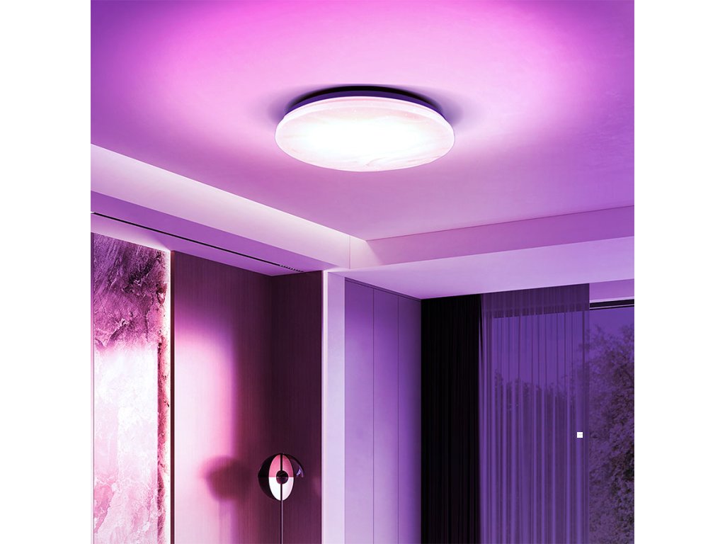 Se spotřebou 30 W a světelným tokem až 2300 lm (pro 4000K) poskytuje silné a rovnoměrné světlo s úhlem 120°. Kromě chytrého ovládání je k dispozici i dálkový ovladač. Tělo z kovu a plastu (Fe + PS), kulatý tvar a rozměry 380 × 65 mm zajišťují elegantní design i funkčnost. LED technologie nabízí životnost až 25 000 hodin, a světlo je ideální volbou pro moderní chytré domácnosti. Energetická třída G doplňuje jeho efektivitu.