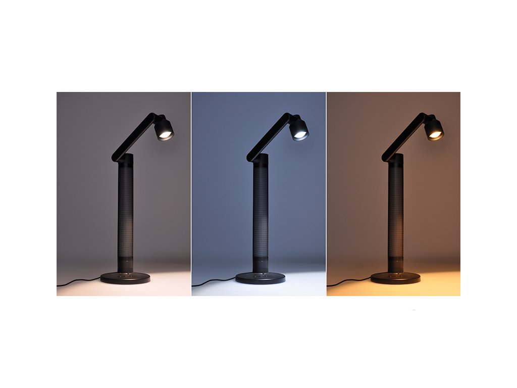 Lampa má příkon 10 W, světelný tok 600 lm, nastavitelnou teplotu světla (3000K/4000K/5000K), možnost horizontální i vertikální rotace a ovládání pomocí ovladače nebo přímo na základně. Vestavěný časovač po 120 minutách lampičku automaticky vypne. Napájení: DC 5V / 2A, adaptér součástí balení. Rozměry cca 365 x 155 x 250 mm. Materiál: železo + ABS. Barva: černá/šedá. Energetická třída G.