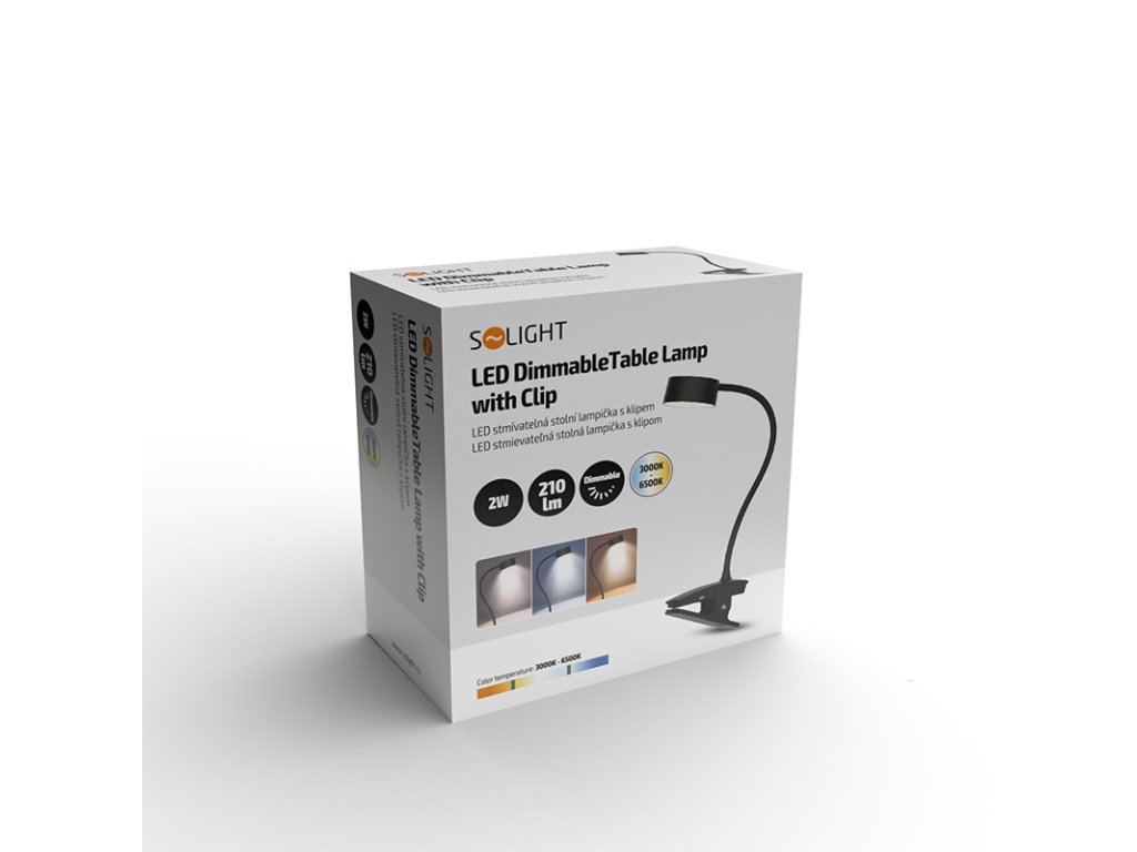 Solight LED stolní nabíjecí lampička, 2W, 210lm, 3CCT, černá, clip