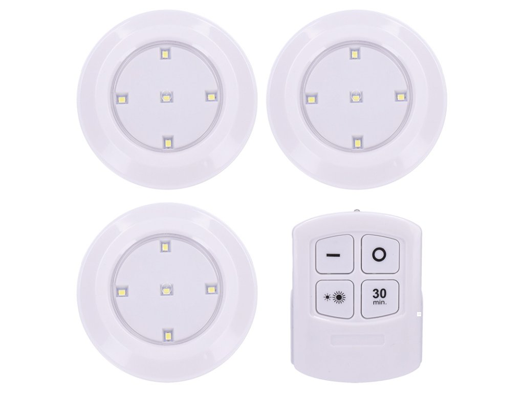 Sada 3 LED světel s dálkovým ovladačem je ideální pro osvětlení vitrín, skříněk, knihoven nebo kuchyňské linky. Každé světlo nabízí světelný tok 50 lm ve studeném bílém odstínu (5000–6000K) a je možné je zapnout a vypnout dálkově či manuálně. Funkce časovače (30 minut) a stmívání přináší maximální komfort při používání.
