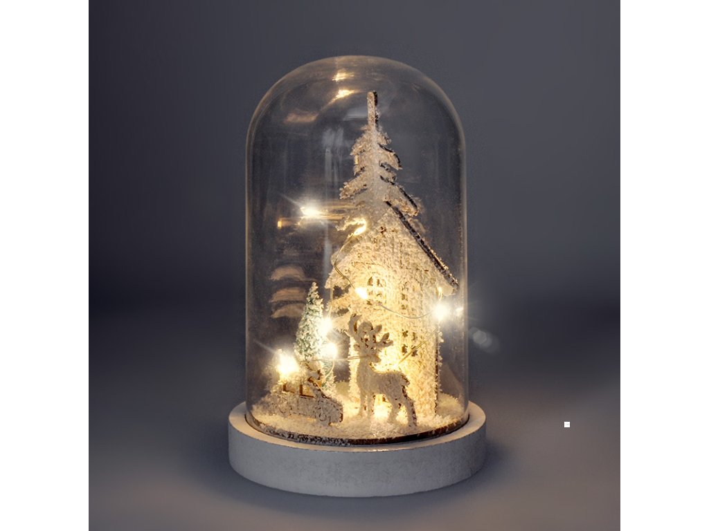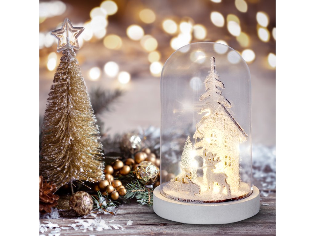 - LED vánoční dekorace - zasněžená krajina s domkem