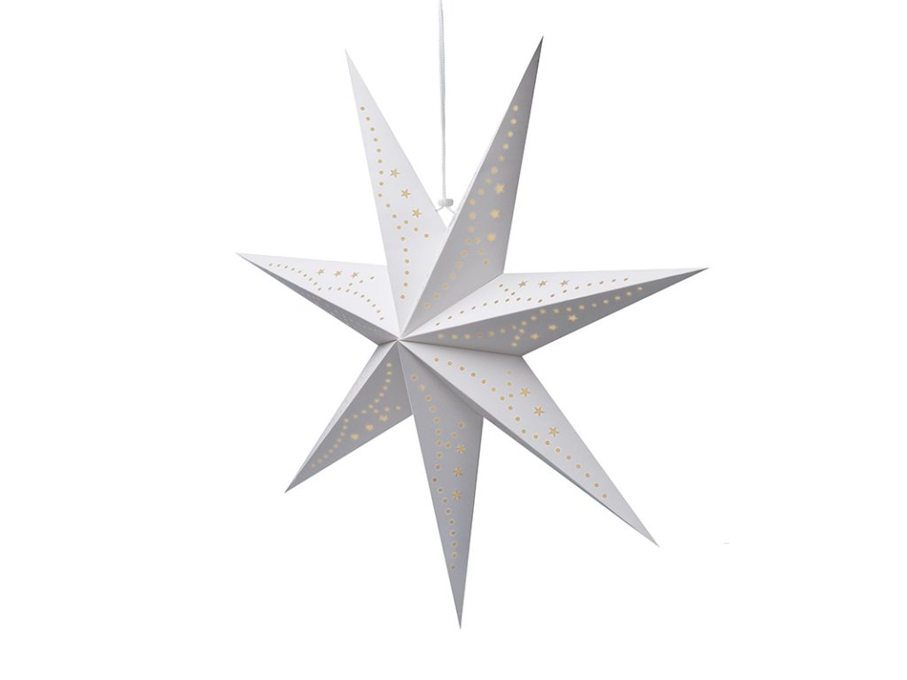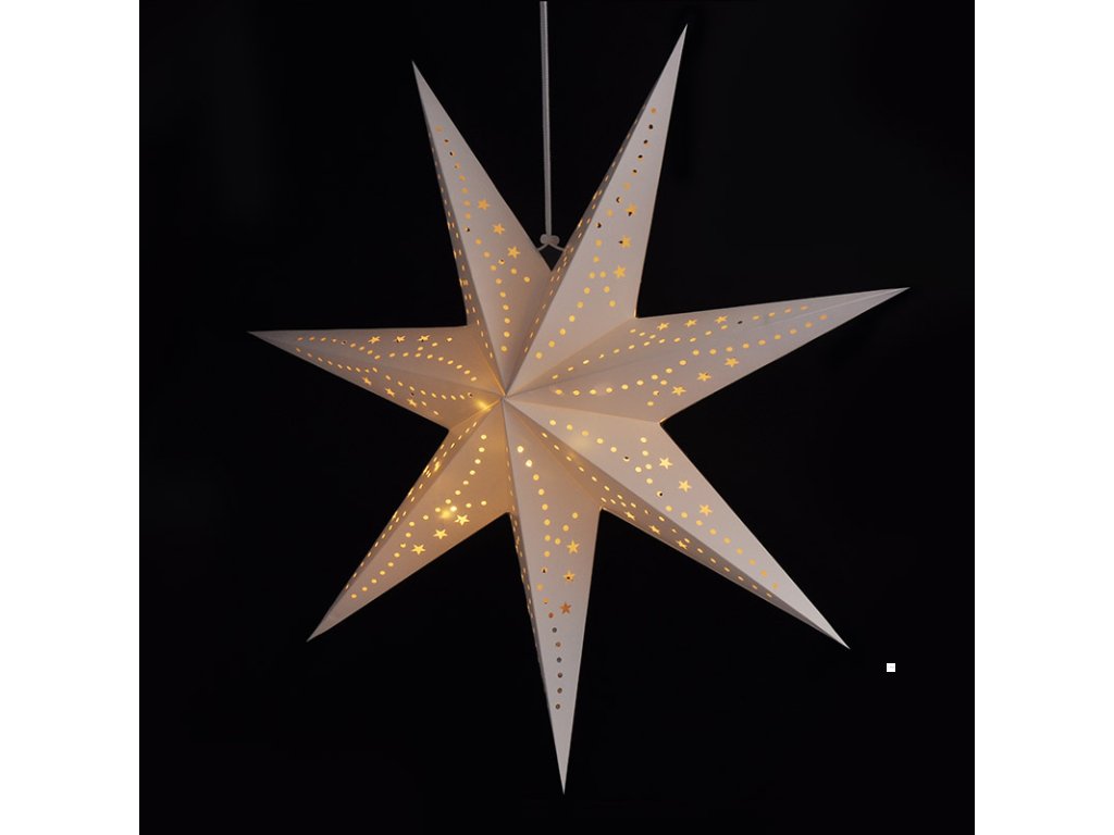Papírová hvězda s integrovaným LED řetězem je působivou dekorací, která zaujme na první pohled. Díky rozměrům 60 × 60 cm slouží jako dominantní sváteční prvek do oken, na stěnu nebo zavěšenou v prostoru. Uvnitř hvězdy je 20 LED diod s teple bílým světlem, které krásně prosvěcují papírový materiál a vytváří útulnou atmosféru.
