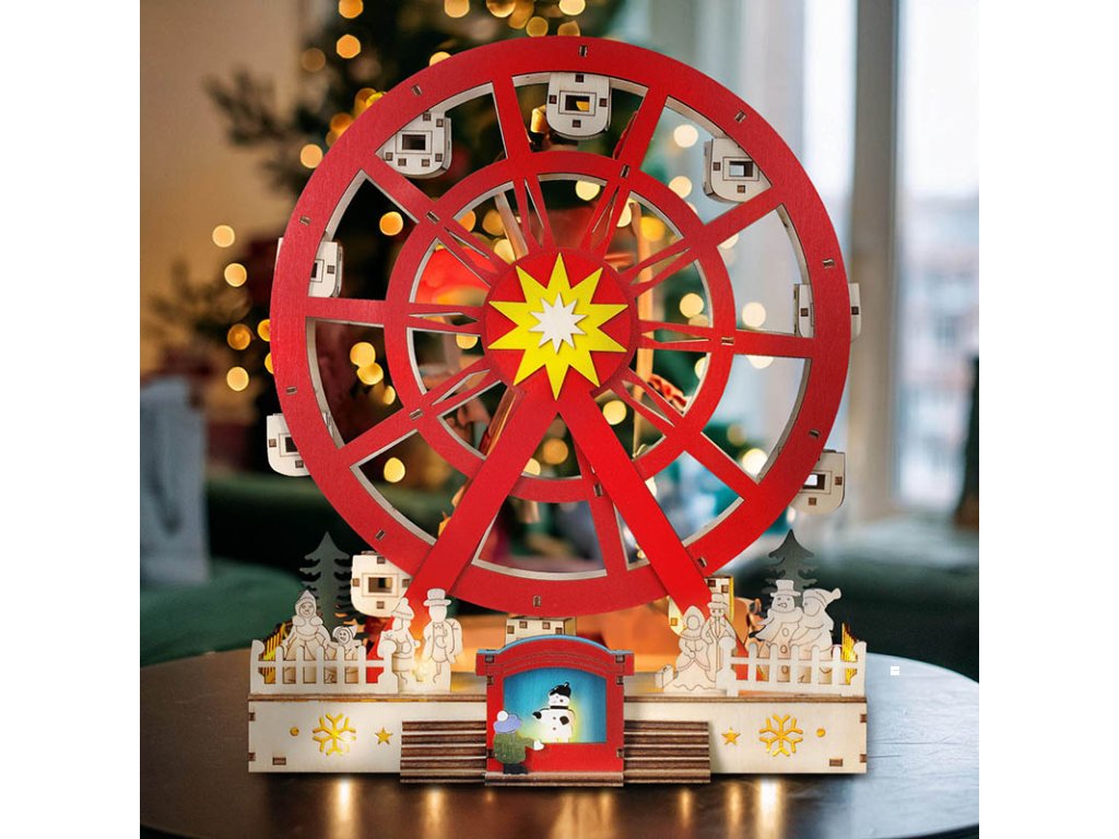 - LED dřevěný vánoční kolotoč s elektro motorem