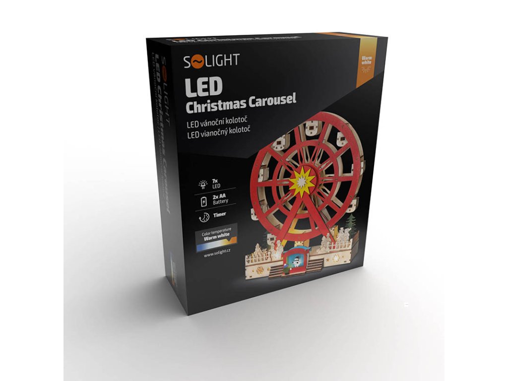 Solight LED vánoční kolotoč, otáčející se, 7x LED, 30cm, 2x AA