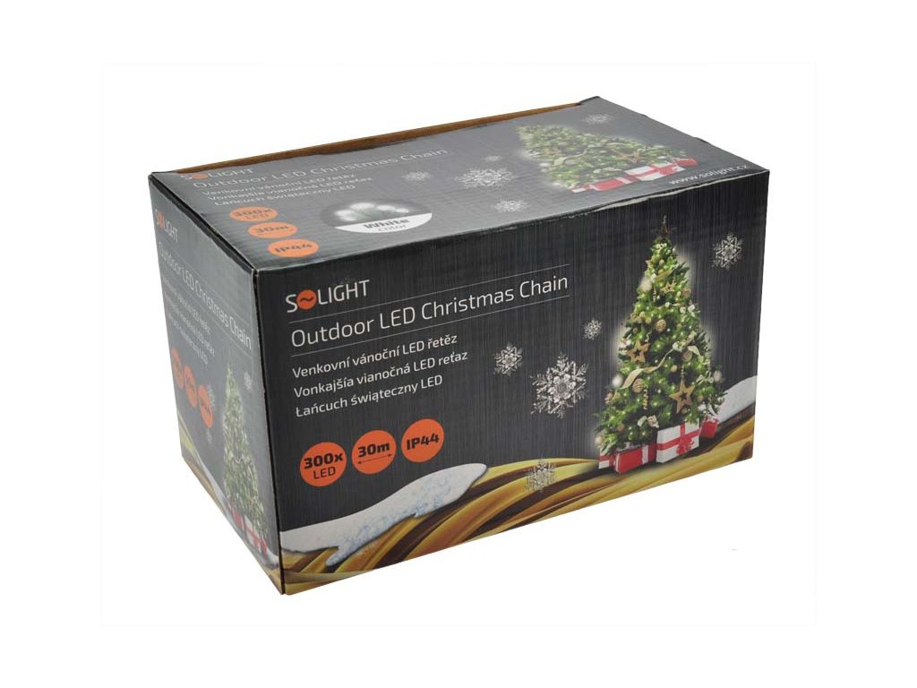 Solight LED vánoční řetěz, 300 LED, 30m, přívod 5m, IP44, bílá
