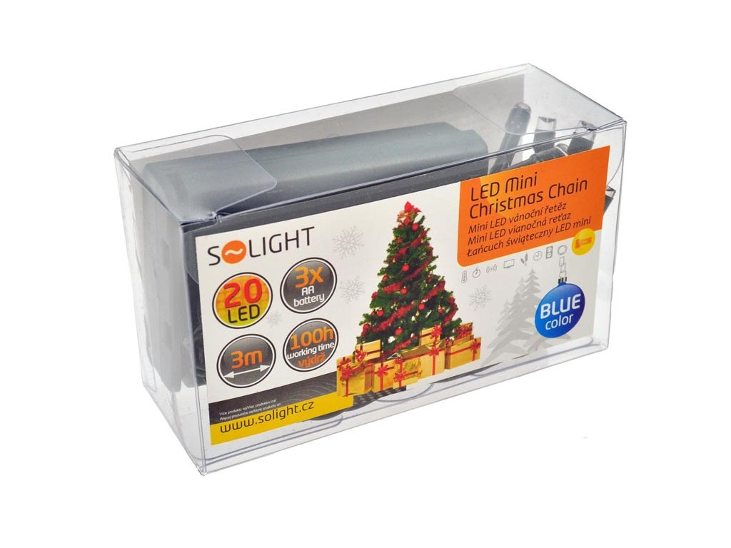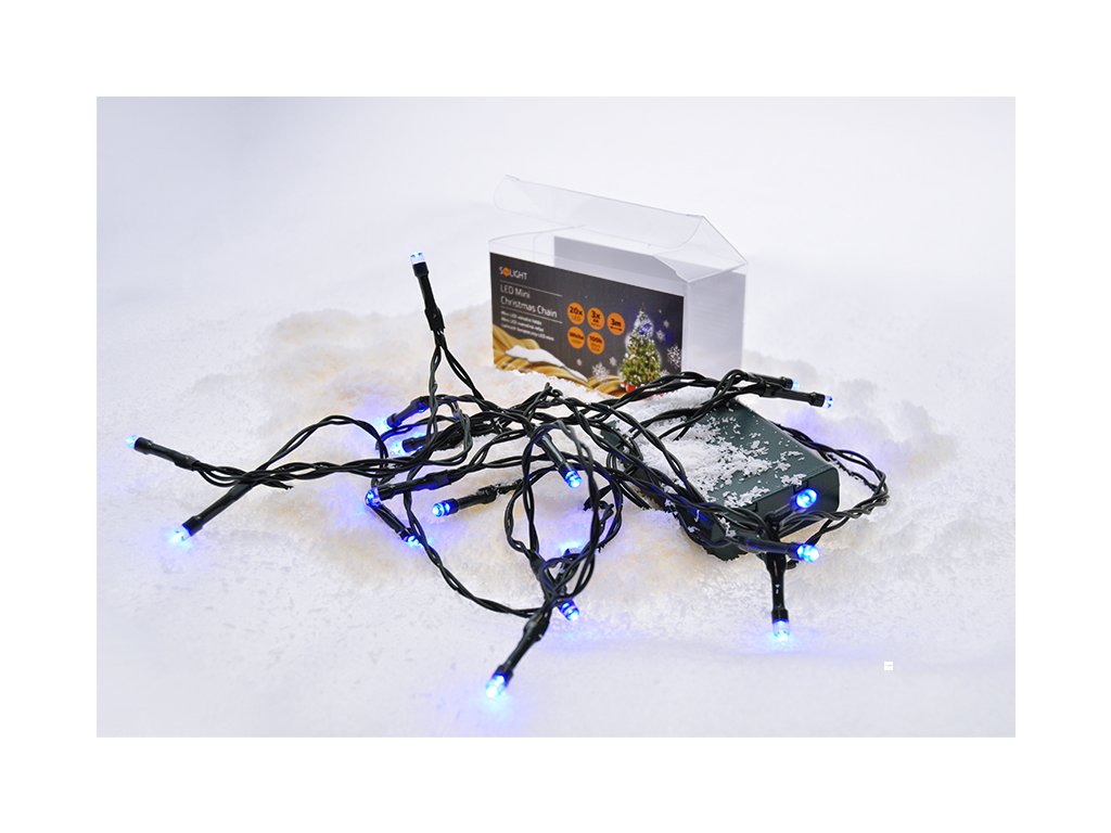 Solight LED vánoční řetěz, 3m, 20xLED, 3x AA, modré světlo, zelený kabel