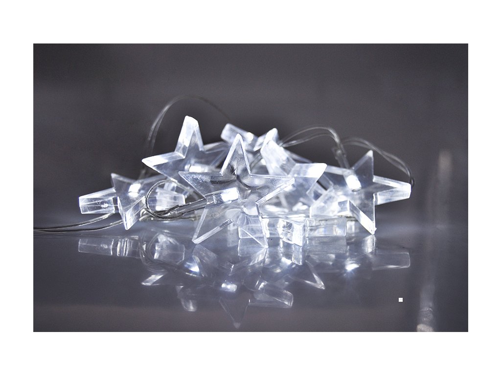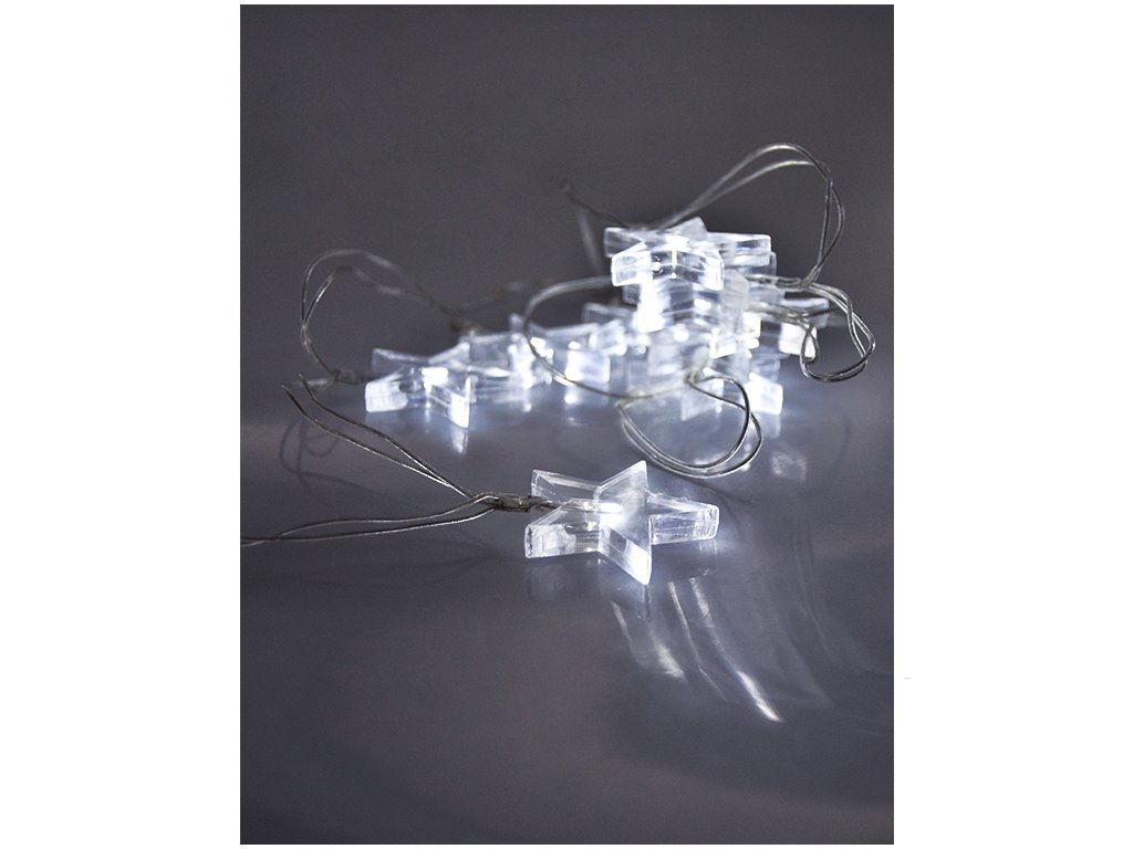 Tento elegantní LED řetěz s motivem hvězd a bílým světlem je ideálním doplňkem vaší vánoční výzdoby. Řetěz je osazen 10 LED diodami, které rovnoměrně osvětlují prostor jemným, čistým světlem. Transparentní kabel s délkou 1,5 metru a přívodním kabelem 1 metr nenarušuje design a působí velmi decentně.