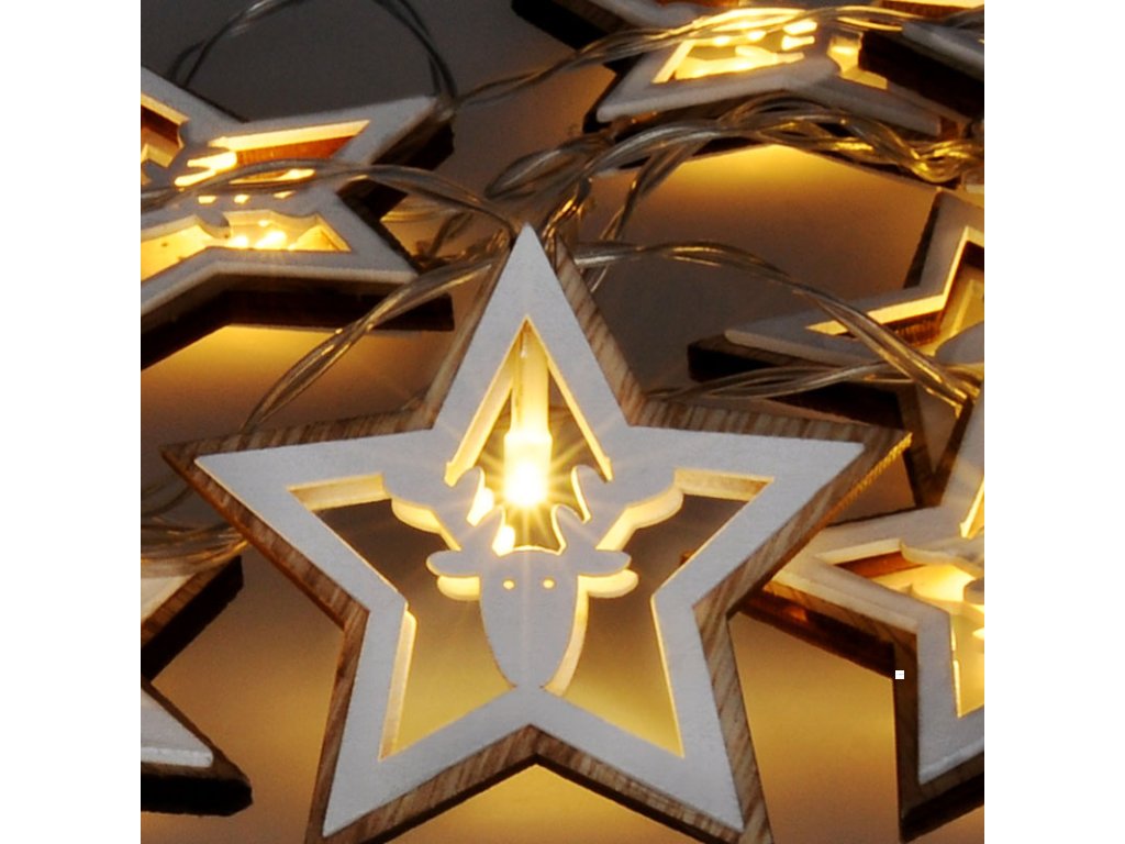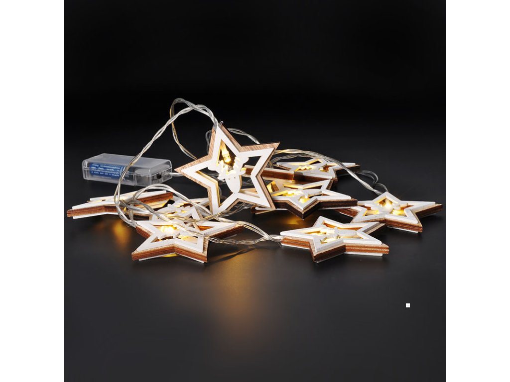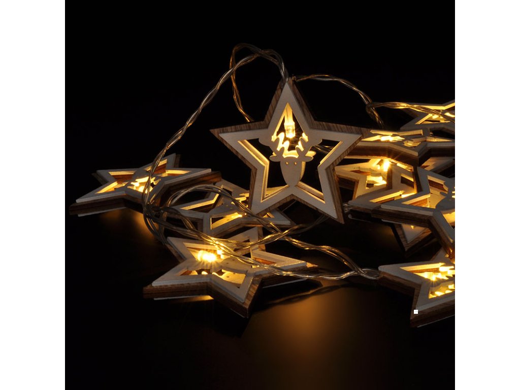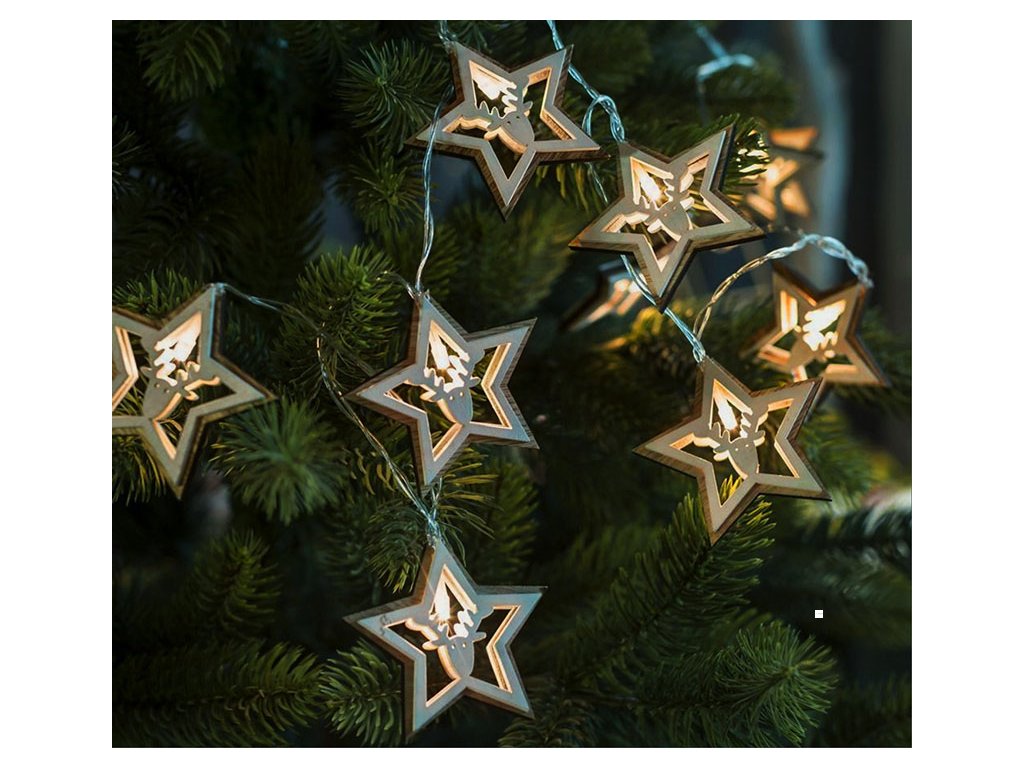 - vánoční dekorativní řetěz s dřevěnými hvězdami a LED diodami
