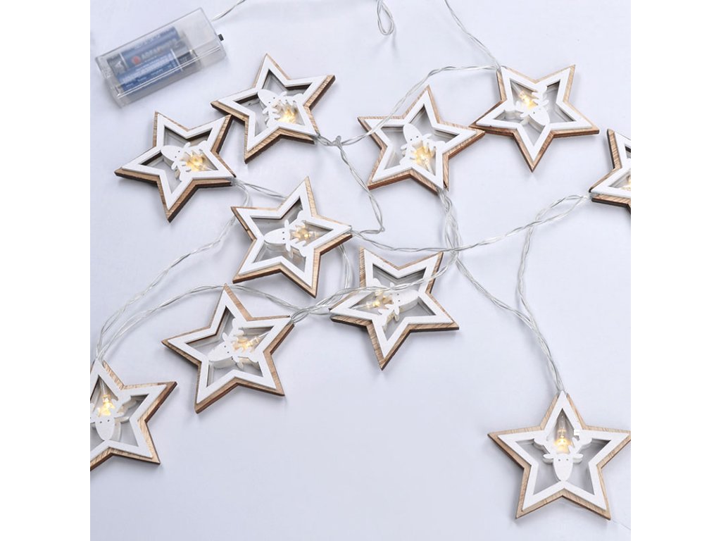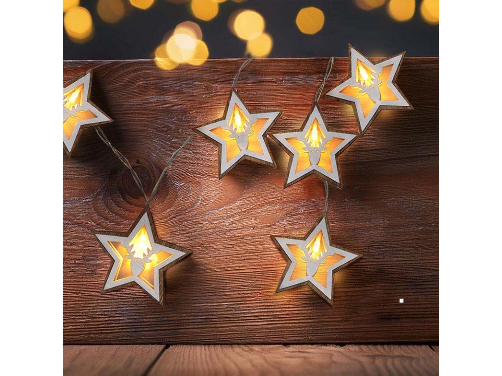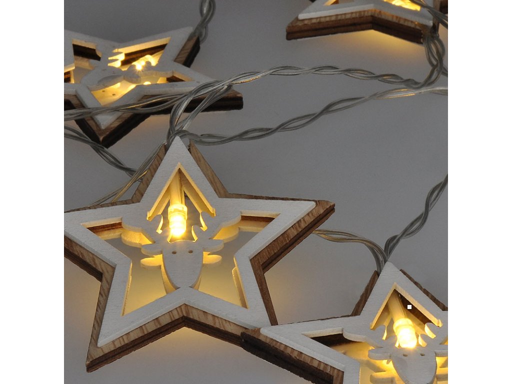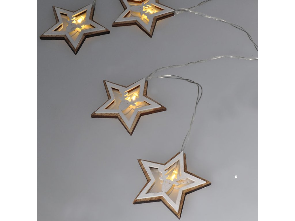 - vánoční dekorativní řetěz s dřevěnými hvězdami a LED diodami