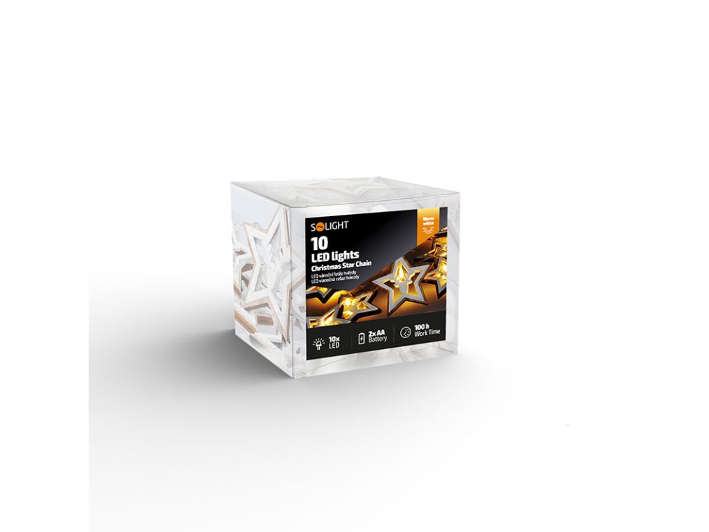 Solight LED vánoční řetěz hvězdy, 10x LED, dřevo, 1,5m, 2x AA