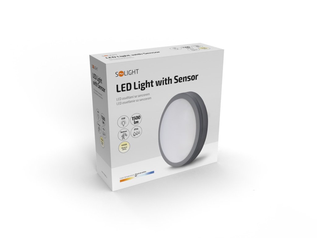 Solight LED venkovní osvětlení se senzorem Siena, šedé, 20W, 1500lm, 4000K, IP54, 23cm