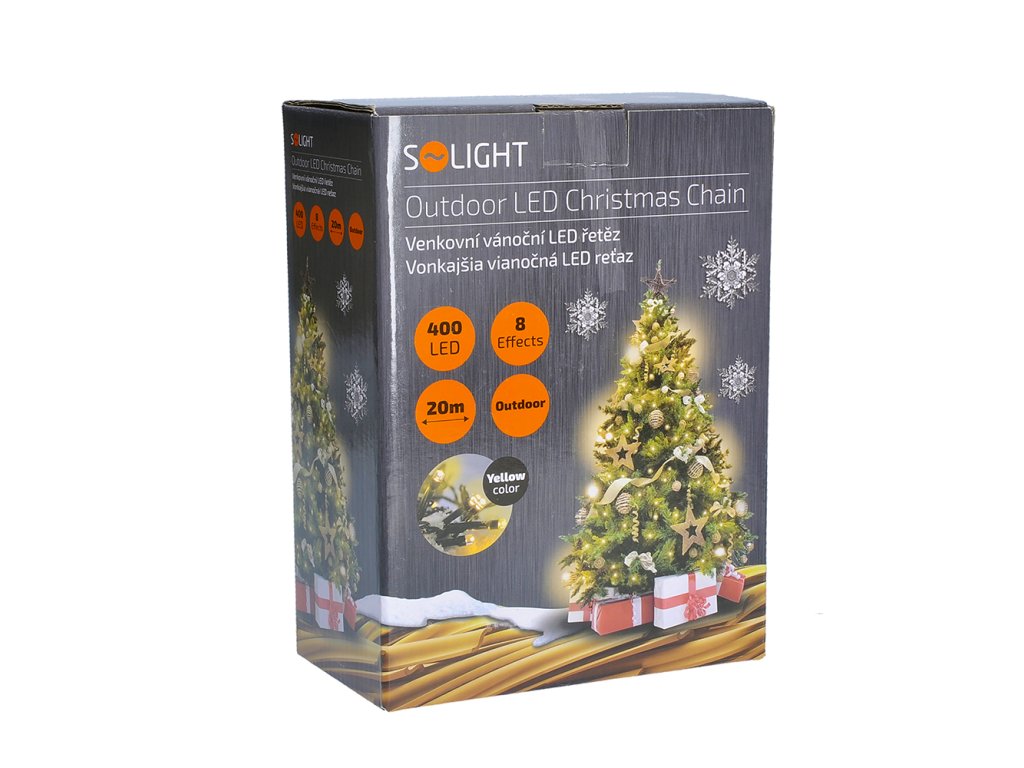 Solight LED venkovní vánoční řetěz, 400 LED, 20m, přívod 5m, 8 funkcí, IP44, teplá bílá