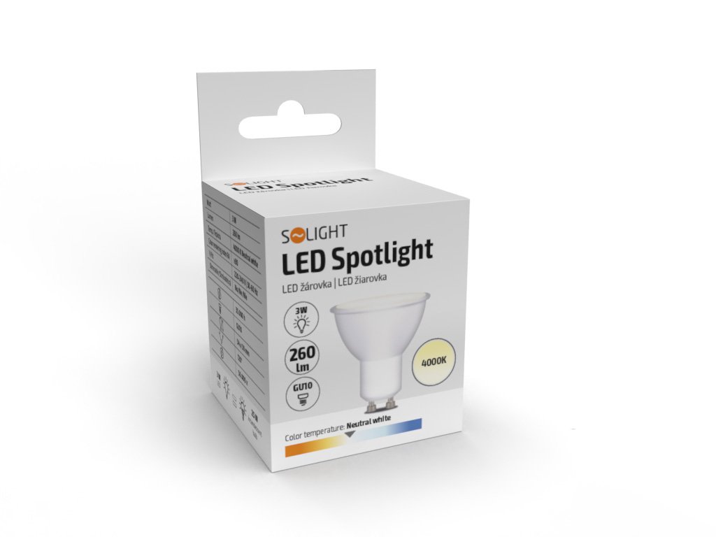 Tato bodová LED žárovka s paticí GU10 a neutrální bílou barvou světla 4000K je ideálním řešením pro osvětlení prostor, kde je kladen důraz na přirozené a nezkreslené podání barev. Díky světelnému toku 260 lm nahradí běžný 25W halogen, zatímco spotřeba zůstává na úsporných 3 wattech. Široký úhel svícení 120° zajišťuje rovnoměrné osvětlení bez stínů.