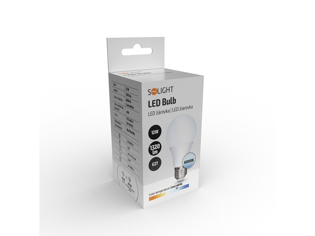 Solight LED žárovka, klasický tvar, 12W, E27, 6000K, 270°, 1320lm