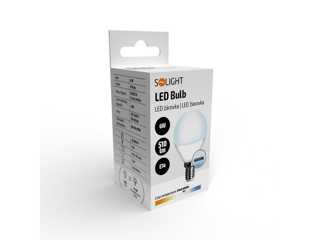 Solight LED žárovka, miniglobe, 6W, E14, 6000K, 510lm