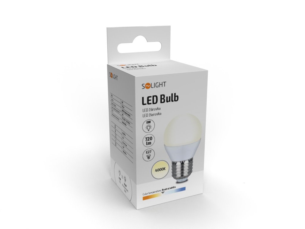 Solight LED žárovka, miniglobe, 8W, E27, 4000K, 720lm