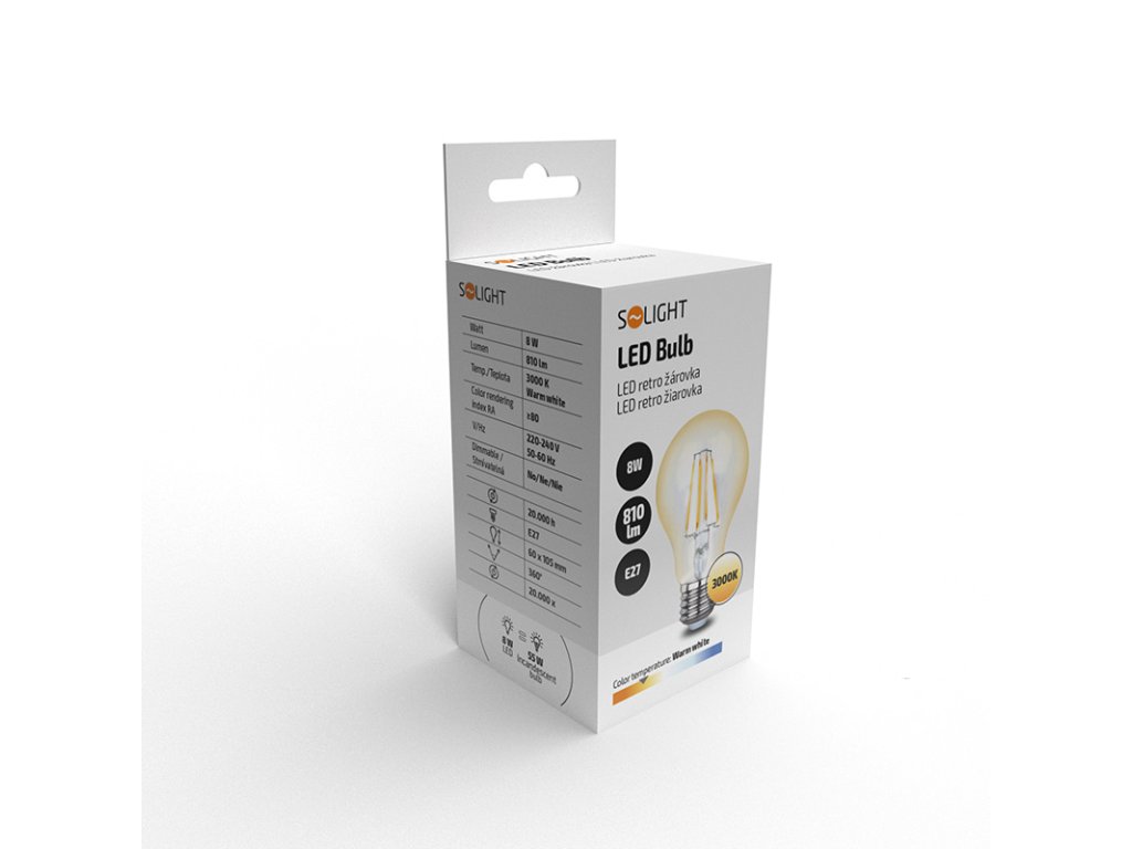 Solight LED žárovka retro, klasický tvar, 8W, E27, 3000K, 360°, 810lm