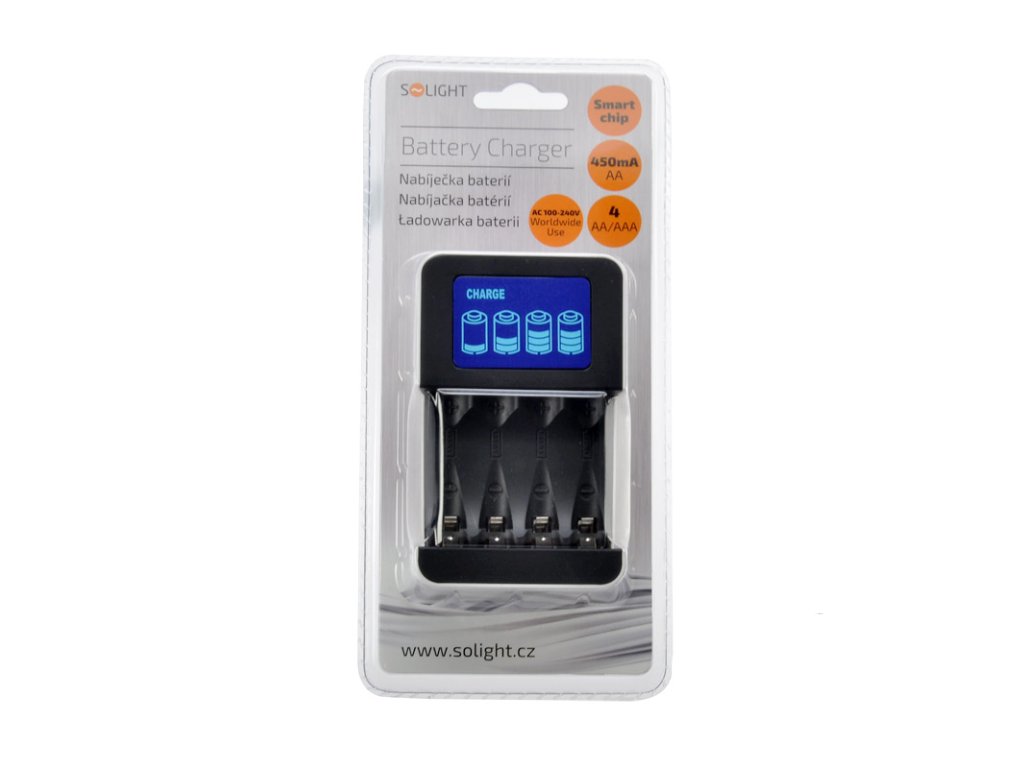 Solight nabíječka s LCD displejem, AC 230V, 450mA, 4 kanály, AA/AAA, řízená mikroprocesorem