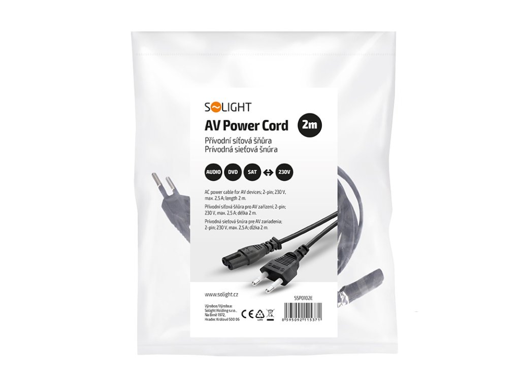 Solight napájecí kabel 2-pin, 230V, 2,5A, 2m