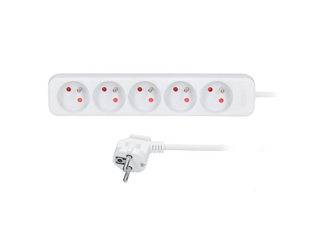 Praktický bílý prodlužovací kabel s délkou 3 metry a pěti zásuvkami umožní přivést elektrickou energii tam, kde není k dispozici pevná zásuvka. Ideální pro domácí i kancelářské využití.