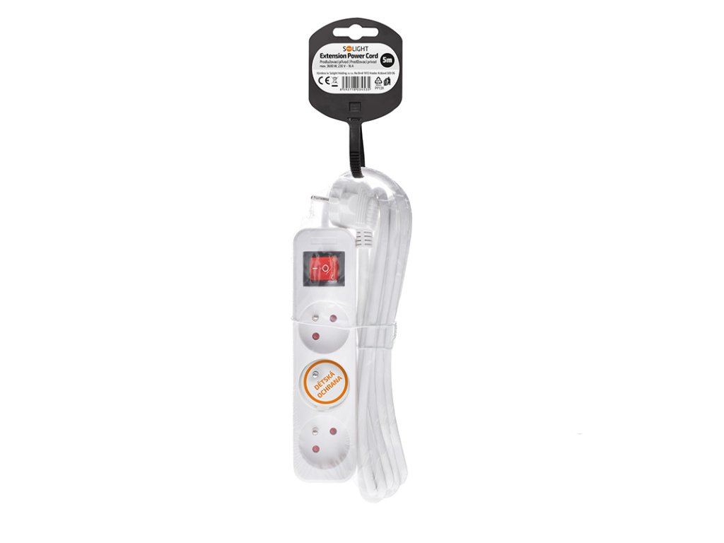 Solight prodlužovací přívod 5m, 3 zásuvky, vypínač, 16A/3680W, PVC, bílý