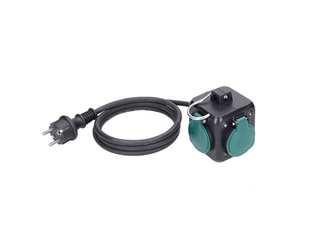 Prodlužovací přívod s gumovým kabelem a třemi zásuvkami ve tvaru kostky je perfektní volbou pro práci na zahradě, stavbě nebo v dílně. Díky kovovému háčku je možné ho pověsit na jakékoli místo. Robustní konstrukce zajišťuje spolehlivý provoz a krytím IP44 zaručuje odolnost proti stříkající vodě ze všech směrů.