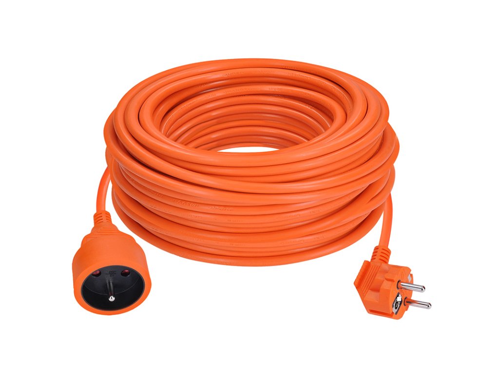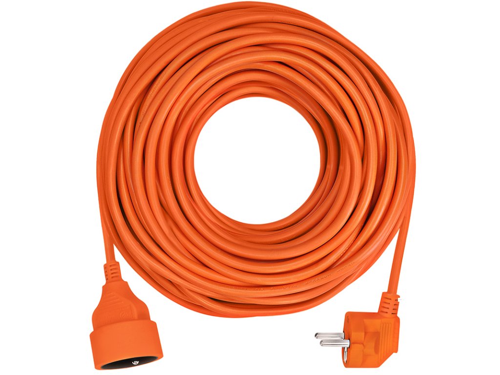 Oranžový prodlužovací kabel s délkou 30 metrů a jednou zásuvkou je ideální k prodloužení elektrické energie na zahradě nebo v dílně. Díky třem vodičům včetně uzemnění je vhodný pro připojení jakýchkoli zařízení s třípólovou uzemněnou i dvoupólovou neuzemněnou vidlicí přívodní šňůry. Barevné odlišení od okolního prostředí zvyšuje bezpečnost při práci.